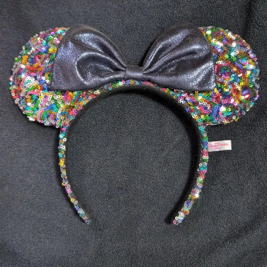 컬러풀한 스팽글과 블랙 리본이 특징인 미니 마우스 귀 머리띠. - 디자인: 컬러풀한 스팽글과 블랙 리본의 미니 마우스 귀 - 스타일: 디즈니 스타일의 머리띠 - 소재: 스팽글과 패브릭 소재의 헤드밴드 방문해 주셔서 감사합니다.