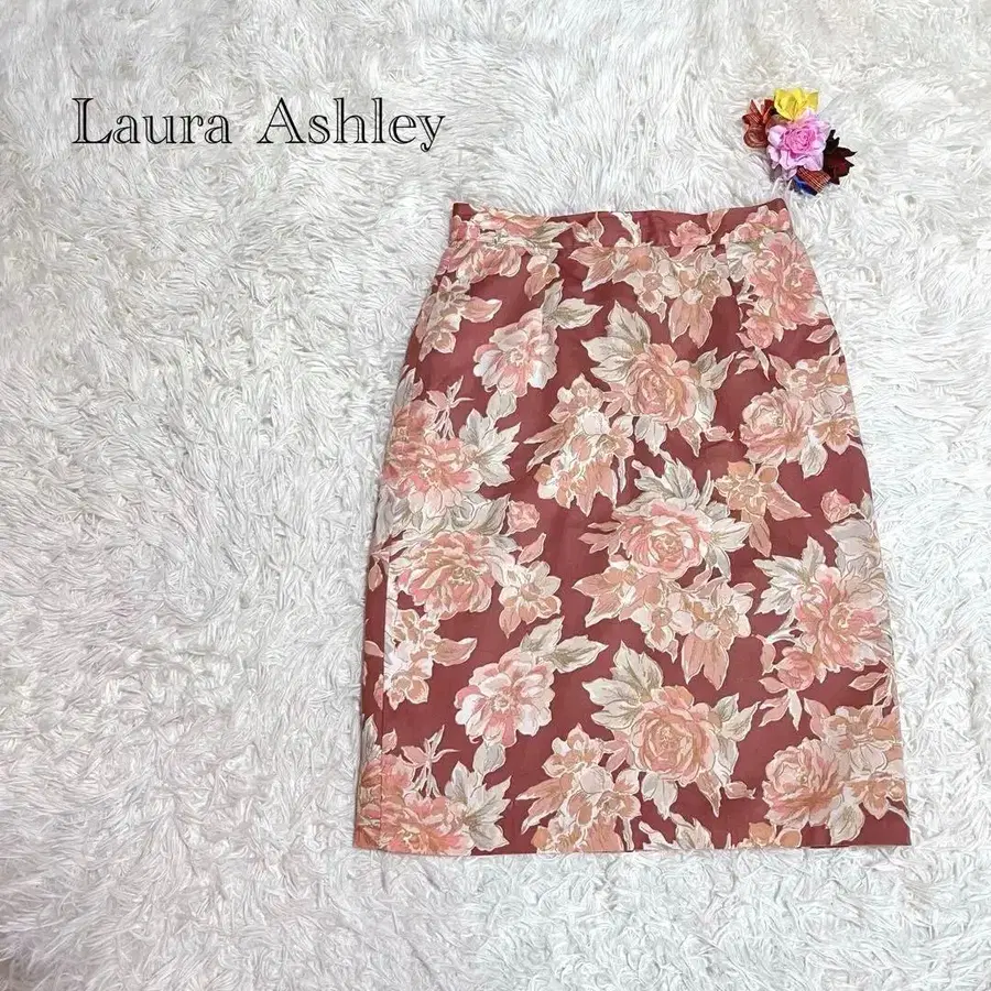 영국제 로라 애슐리 꽃무늬 타이트 스커트 브라운 계열 쇼와 레트로