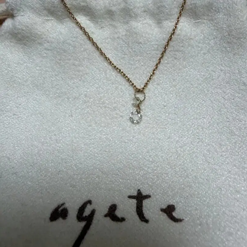 심플한 디자인의 agete K10 목걸이, 다이아몬드 0.1g 아가테 파우치 포함이지만 얼룩이 있습니다. - 브랜드: agete - 소재: 금 10K - 디자인: 심플한 다이아몬드 목걸이