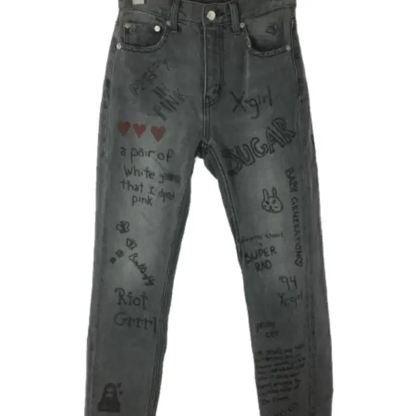 그래피티 프린트가 특징인 스키니 청바지 몇 번 착용했지만, 흠집/얼룩이 없어서 문제없이 착용하실 수 있습니다. - 브랜드: X-girl - 색상: 그레이 - 사이즈: 1 - 디자인: 그래피티 프린트 - 스타일: 스키니 청바지 사이즈 - S
