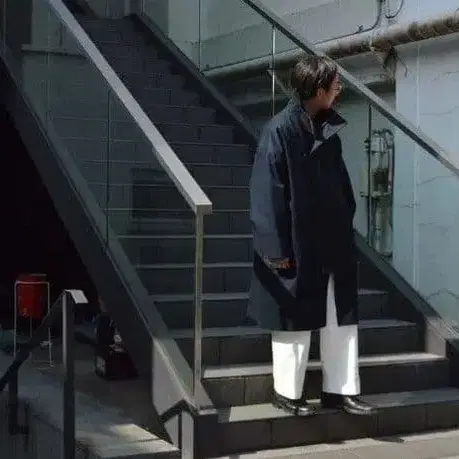 mfpen의 존스턴 코트입니다. 사용 횟수는 10회 정도입니다. 눈에 띄는 얼룩이나 데미지는 없습니다. 컬러 NAVY 정가 60000엔 어깨 너비 70 가슴 너비 76 기장 104 소매 길이 50.5 소매 레스큐 코트와 같은 분위기로, 스탠딩 칼라의 느낌과 프론트의 큰 플랩 등, 다른 곳에서는 보기 힘든 디자인입니다. 소매에는 버튼을 달아, 턱처럼 접을 수 있습니다. 어깨는 떨어지는 듯한 사이즈로, 암홀도 상당히 넓습니다. 뒷면은 확실하게 드레이프가 나타나는 볼륨감이 있으므로, 오버사이즈를 좋아하는 분들에게는 만족스러운 뒷모습일 것입니다. 잘 부탁드립니다.