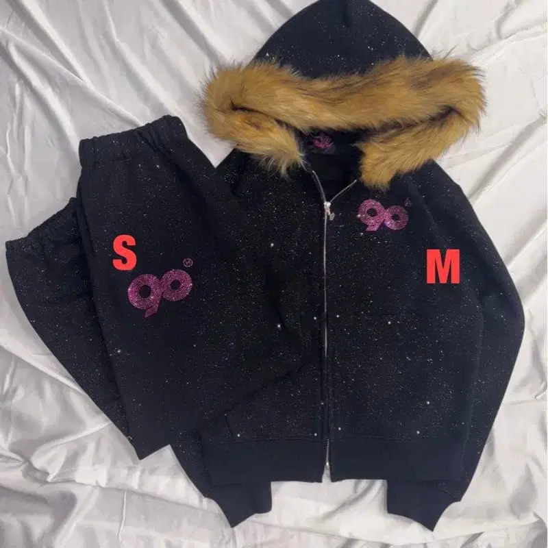 9090 girl 90 로고 글리터 퍼 집 셋업