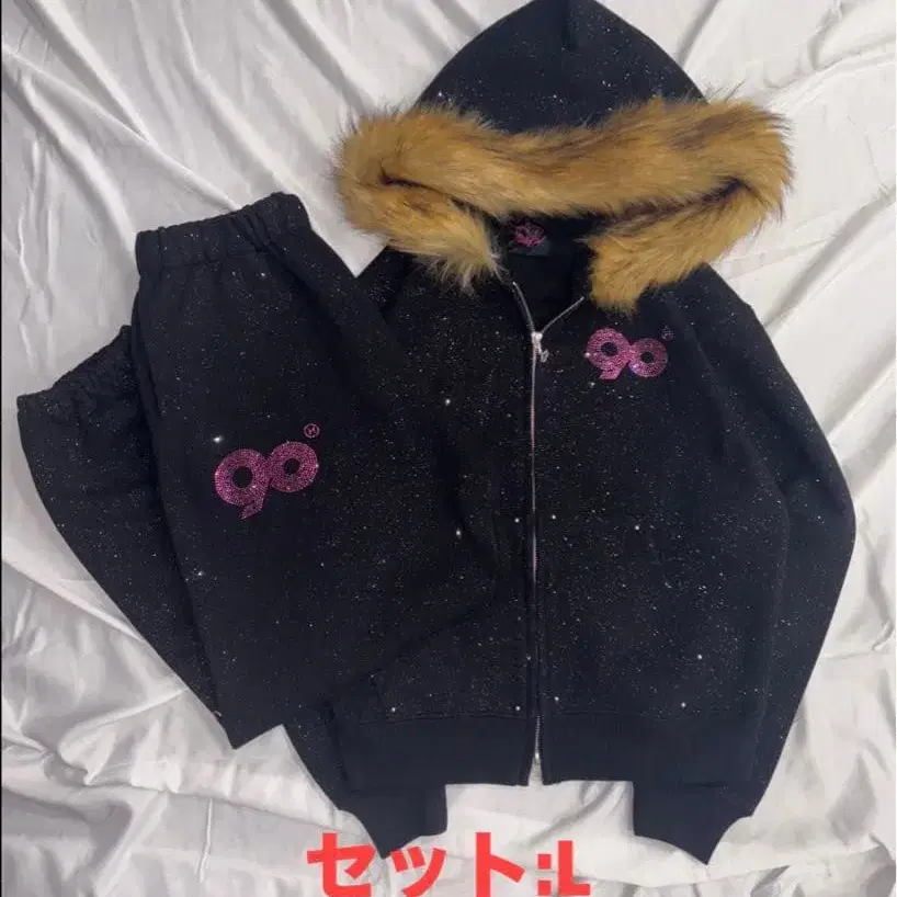 9090 girl 90 로고 글리터 퍼 집 셋업