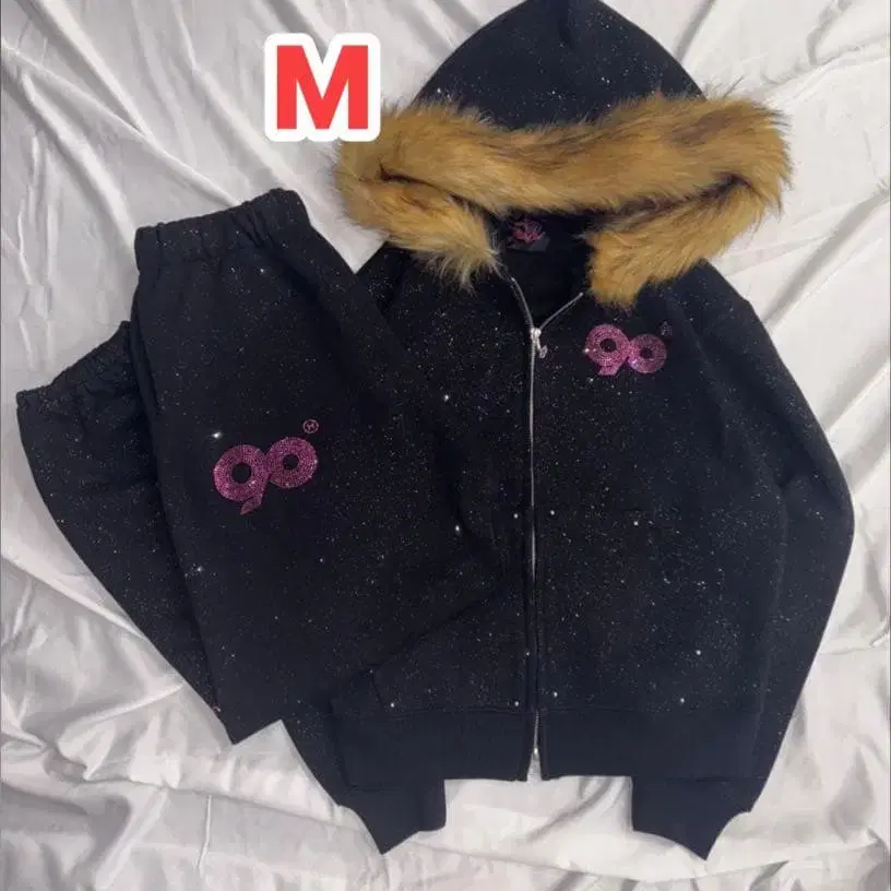 90 Logo Glitter Fur Zip Hoodie x Pants