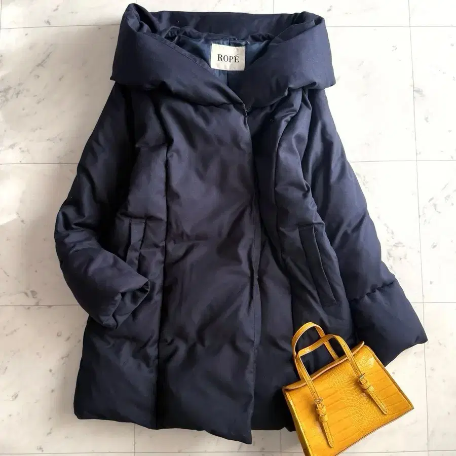 새상품급 로페 ROPE 볼륨 후드 미들 기장 다운 코트 네이비