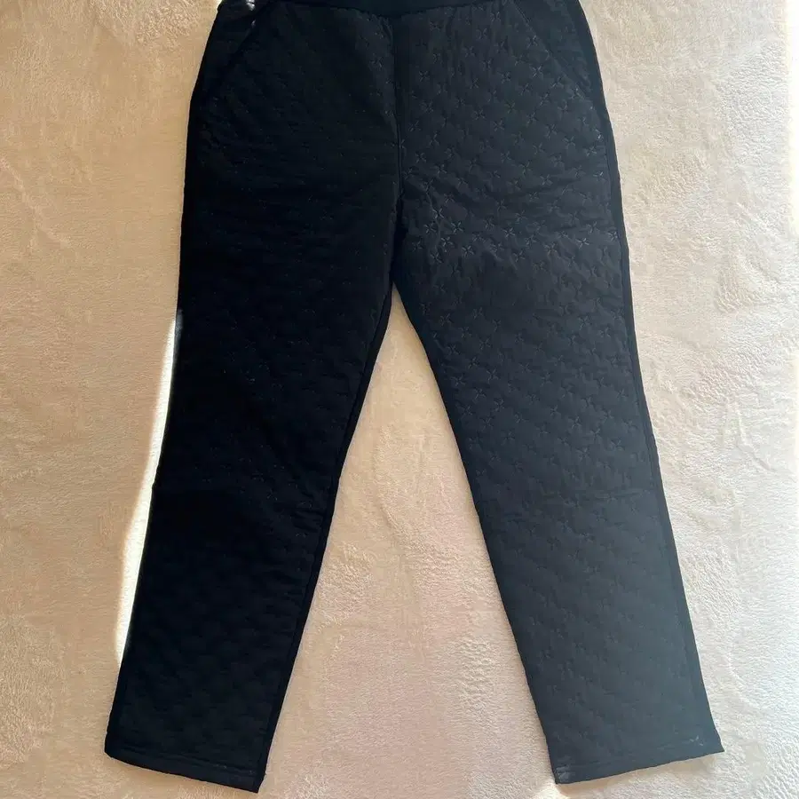 신축성 있는 허리 밴딩과 퀼팅 디자인의 캐주얼 팬츠.