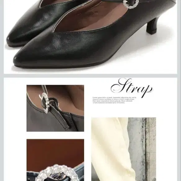 [ ◎ 인기 비쥬 디자인 ] 가느다란 스트랩에 고급스러운 사이즈감의 비쥬로 차분한 성인 느낌을 줍니다. 스틸레토에 발등이 얕은 V 컷 라인이 발을 아름답게 보여줍니다.