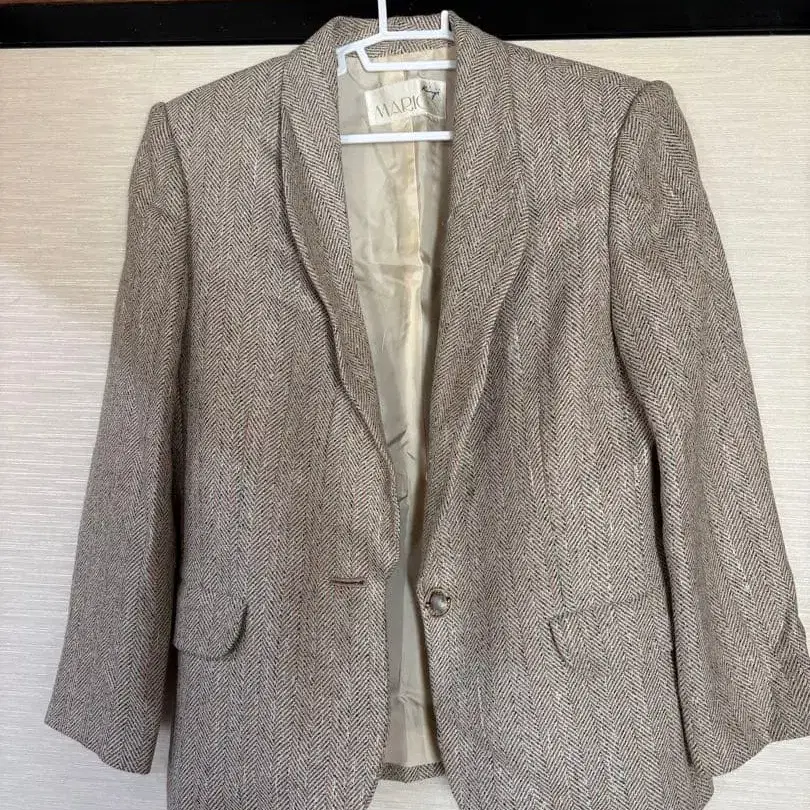 헤링본 무늬의 베이지 계열 블레이저, 싱글 버튼 사양. - 디자인: 헤링본 무늬 - 브랜드: MARION - 색상: 베이지 계열 - 스타일: 블레이저 - 버튼: 싱글 버튼 방문해 주셔서 감사합니다.