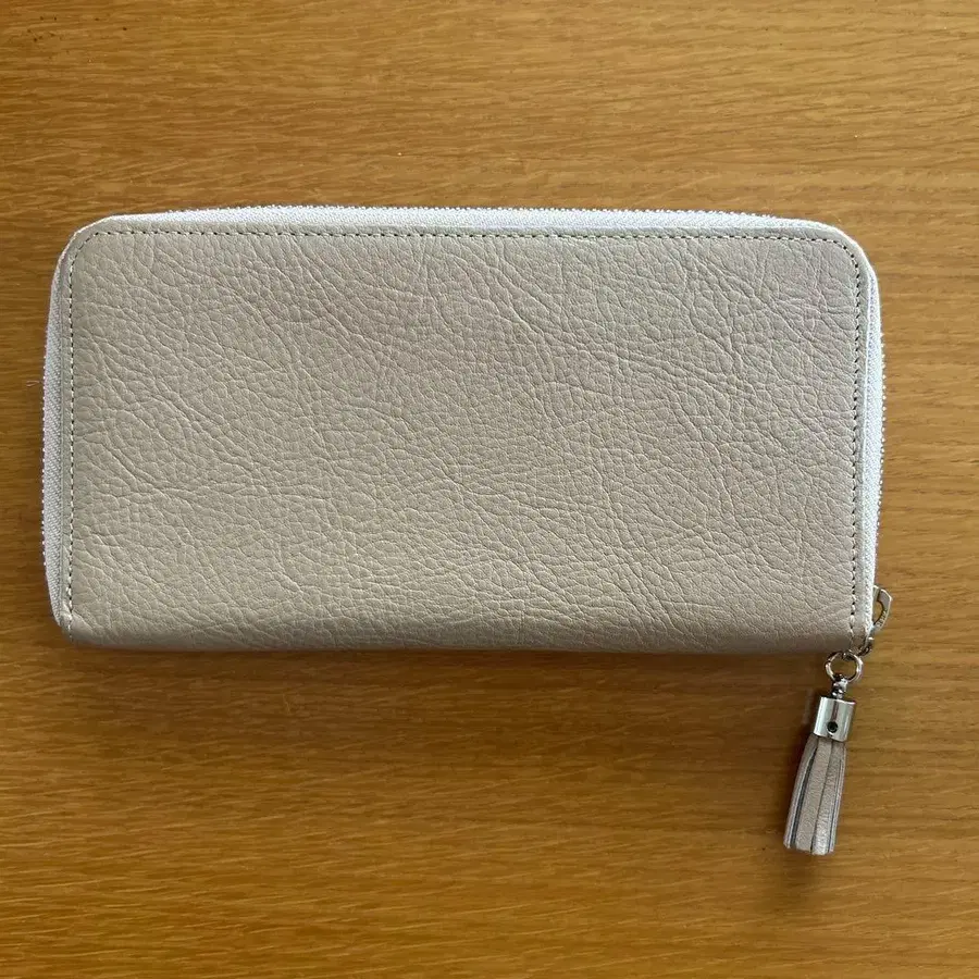 가죽제품의 라이트 베이지 장지갑, 지퍼 개폐, 카드 슬롯 다수, 태슬 부착. 동전 지갑 부분에 약간의 얼룩은 있지만, 사용감은 그다지 많지 않다고 생각합니다. 방문해 주셔서 감사합니다.
