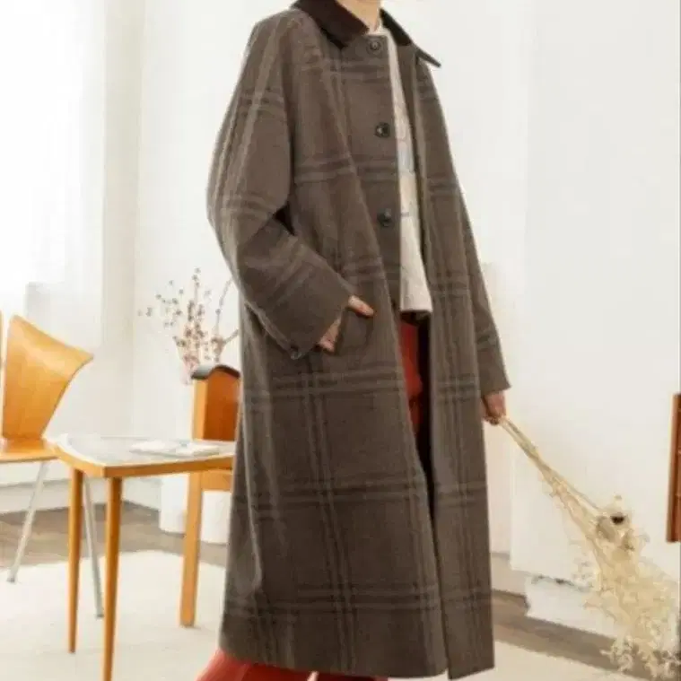 - 특징: 롱 기장, 체크 무늬, 프론트 버튼