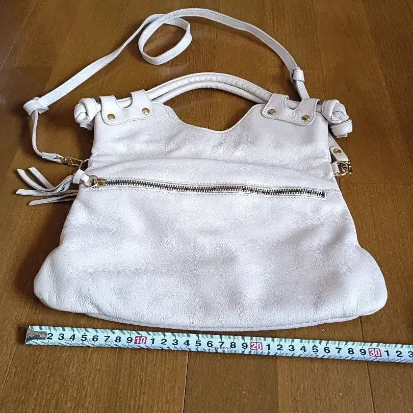 천연 가죽 화이트 아이보리 숄더백