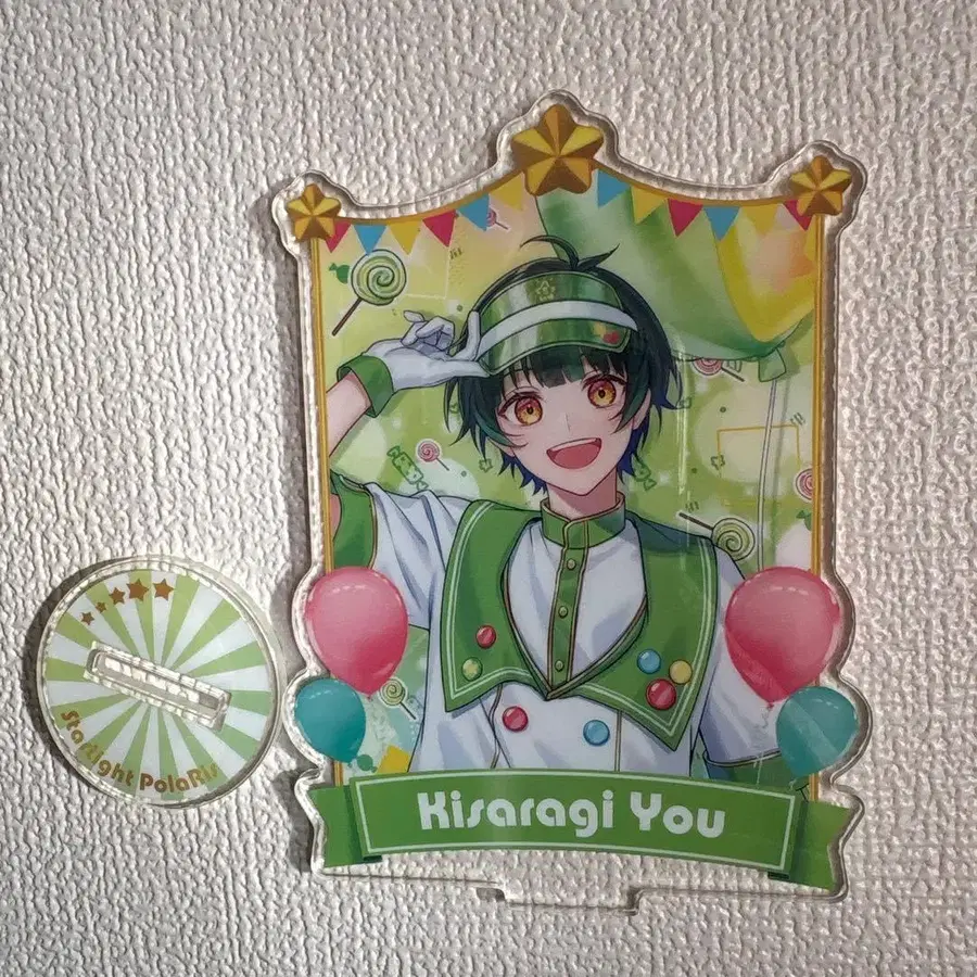 구매 후 봉투에 넣어 보관했습니다. - 캐릭터명: Kisaragi You - 디자인: 컬러풀한 벌룬과 캔디 테마 - 사이즈: 약 15cm x 10cm - 소재: 아크릴제 - 부속품: 스탠드 포함 방문해 주셔서 감사합니다. #스타폴라 #키사라기 #유군