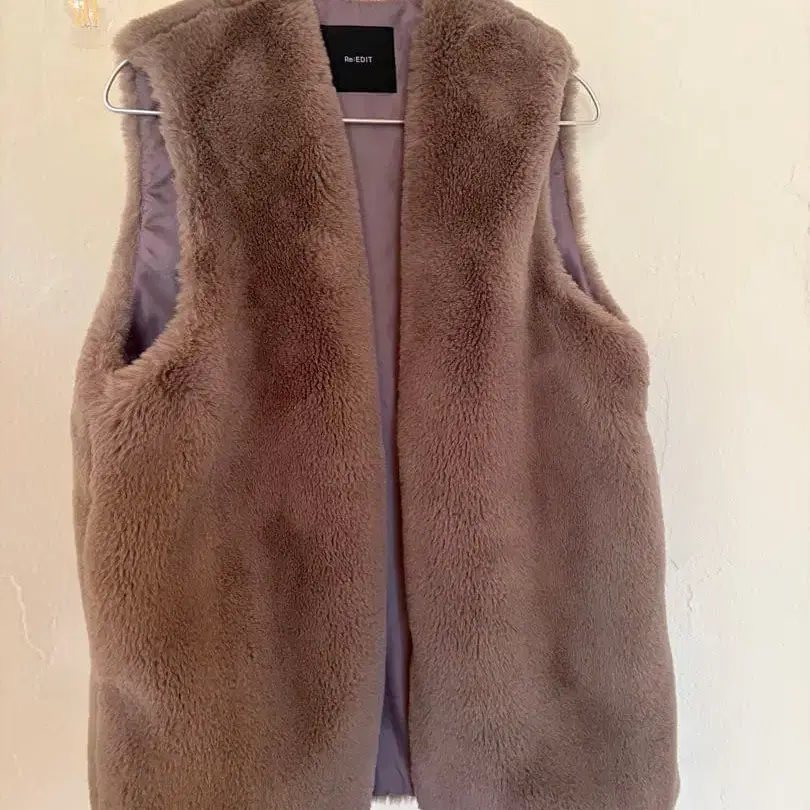 [ 새상품 미사용 ] 베이지 퍼 베스트 노카라