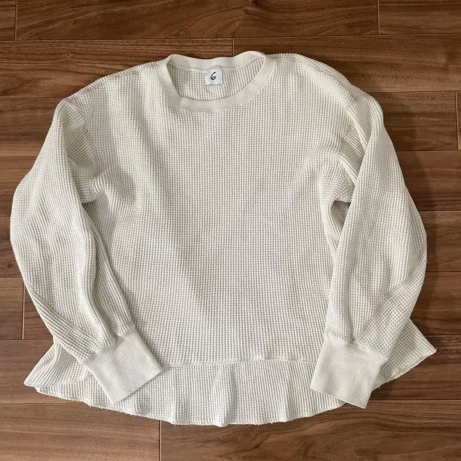 부드러운 화이트 와플 편직 긴팔 상의.