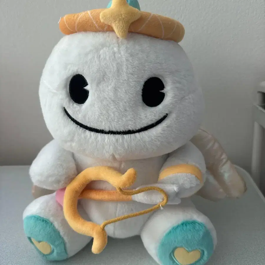 비고라이브 BIGO 엔젤 디자인의 화이트 봉제 인형, 하프와 깃털 포함. - 캐릭터: 엔젤 - 색상: 화이트 - 특징: 하트 모양의 발, 깃털 포함 - 액세서리: 하프 - 디자인: 왕관이 달린 머리 방문해 주셔서 감사합니다.