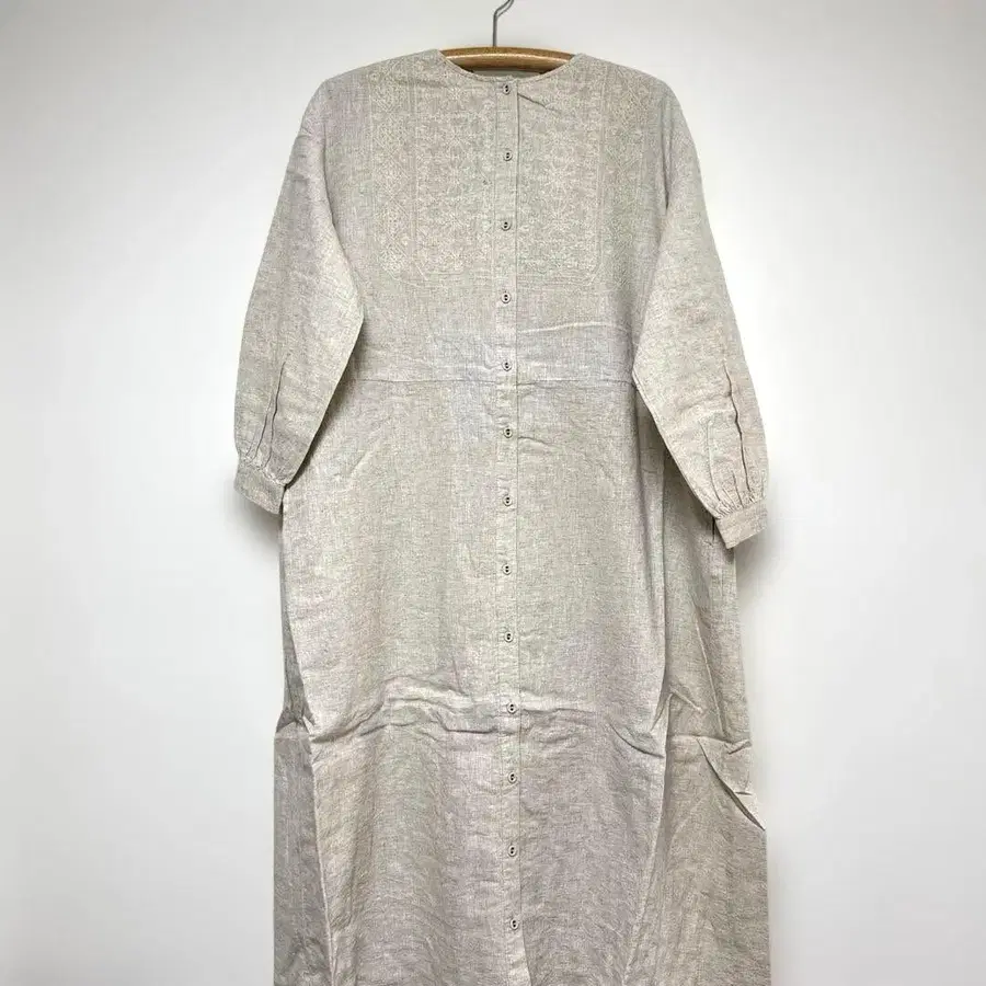 사만사 모스모스 미사용품 스캘럽 레이스 자수 린넨 슬리브리스 원피스