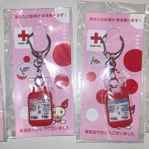 헌혈 기념 굿즈 키링 세트입니다. 수혈용 혈액 백 모양으로, A, B, O, AB형 각 혈액형별로 1개씩 세트입니다. 모두 새상품 미개봉입니다. 배송용 비닐 봉투에 넣어 유패킷 포스트로 발송할 예정입니다. #헌혈 #켄케츠짱
