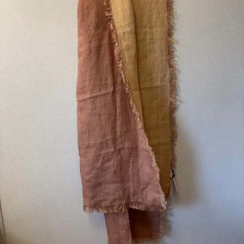 자동 번역되었어요. 원문보기핑크와 베이지의 바이컬러, 프린지 엣지의 린넨 혼방 스톨.