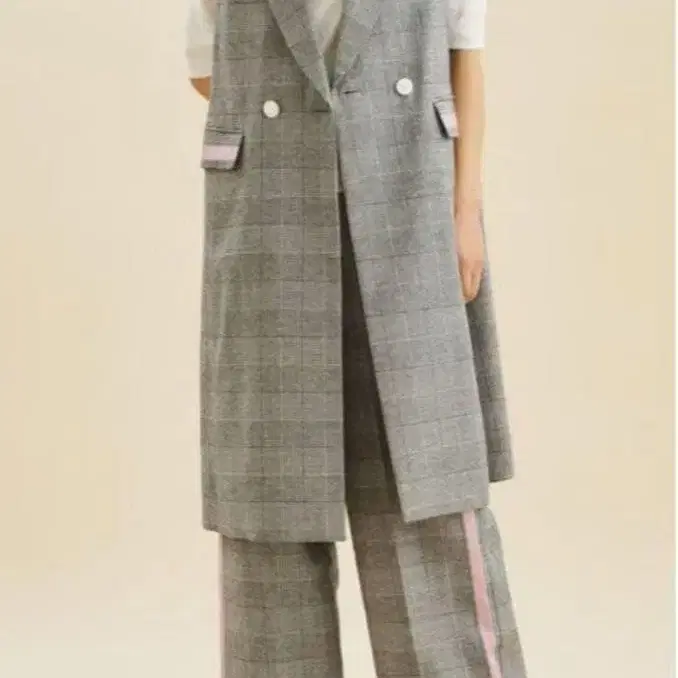 코디네이트의 신선도를 높여주는 트렌디한 롱베스트. 이탈리아 'NYTRO'(나이트로)사의 코튼 린넨 비스코스 소재를 고급스럽게 사용했습니다. 매니시한 무드를 높여주는 글렌체크 패턴에, 라이트 핑크 새틴 라인을 뒷중심, 카라, 포켓에 샤프하게 더해 패턴으로 재미를 준 어른스러운 디자인입니다. 캐주얼에도 포멀하게도 잘 어울리는, 재단이 아름답고 긴 기장감이 포인트입니다. 깊은 V넥은 무지 니트나 로고 티셔츠 등 가지고 계신 아이템과도 코디하기 쉬워, 간편하게 한 단계 위의 패션을 즐길 수 있습니다. 셋업으로 착용 가능한 세트 팬츠와 함께 매치하는 것도 추천합니다. 사이즈 36 가슴 너비 46 기장 105 미사용에 가까운 컨디션입니다! 사이즈 - M