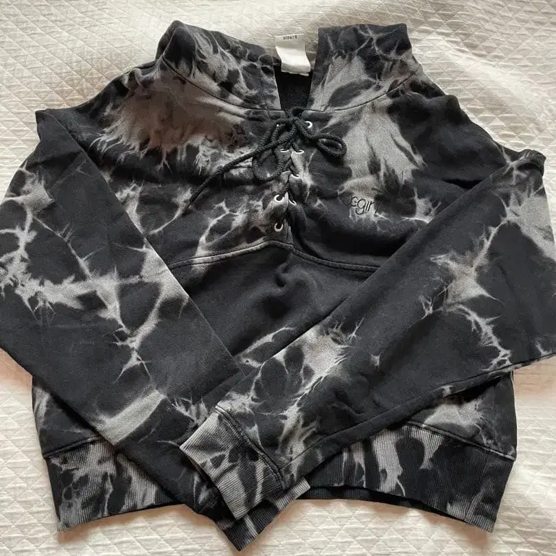 x-girl 블랙 그레이 타이다이 레이스업 후드