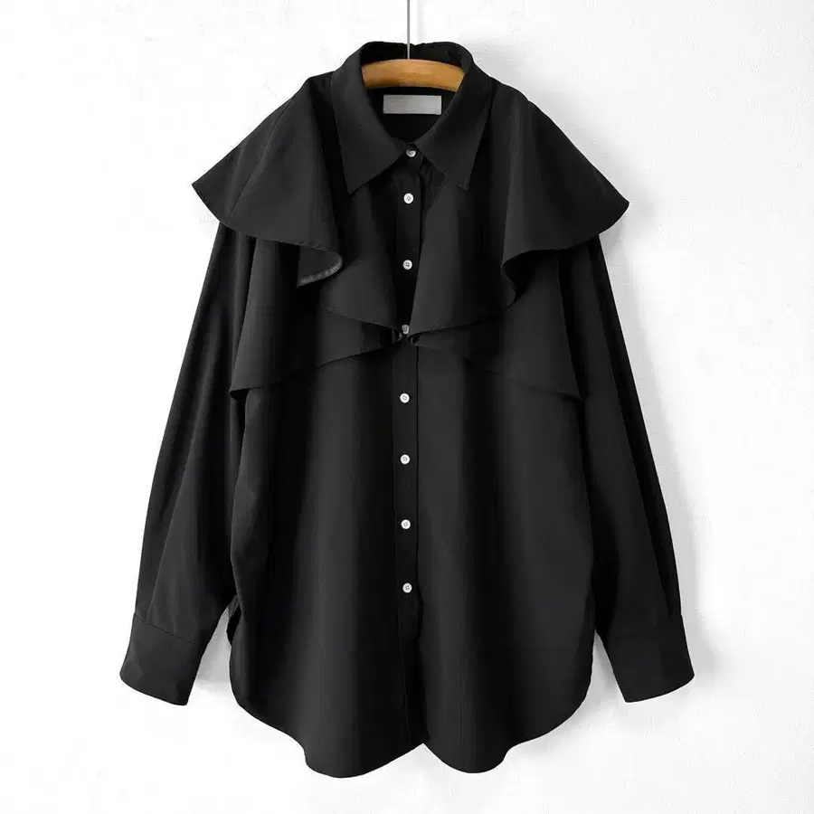 오드리앤존와드 트로피컬 케이프 프릴 블라우스 라운드 헴 블랙