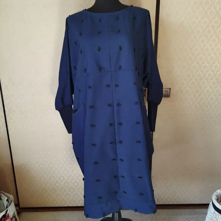 새 원단으로 만들었습니다. 네이비 도트 무늬의 긴팔 원피스이며, 포켓이 있어 캐주얼하게 입을 수 있습니다. - 색상: 네이비 - 디자인: 포켓 부착, 도트 무늬 - 소매: 긴팔 방문해 주셔서 감사합니다.