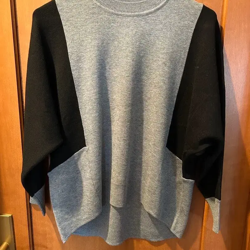 [ 미사용 새상품 ] 배색 니트 볼륨 슬리브 프리 사이즈 바이컬러