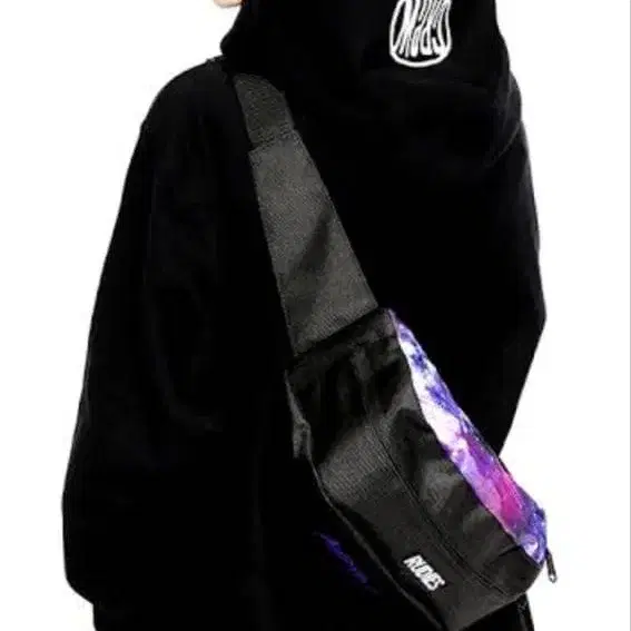 우주 패턴 디자인의 RUDIES 바디백, 패レンタル 어드바이저리 로고가 있어 스타일리시합니다.