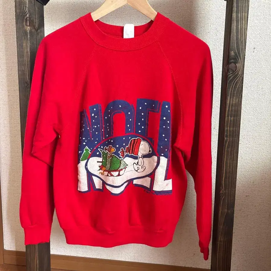 스누피와 친구들의 NOEL 디자인이 특징인 레드 트레이닝복.