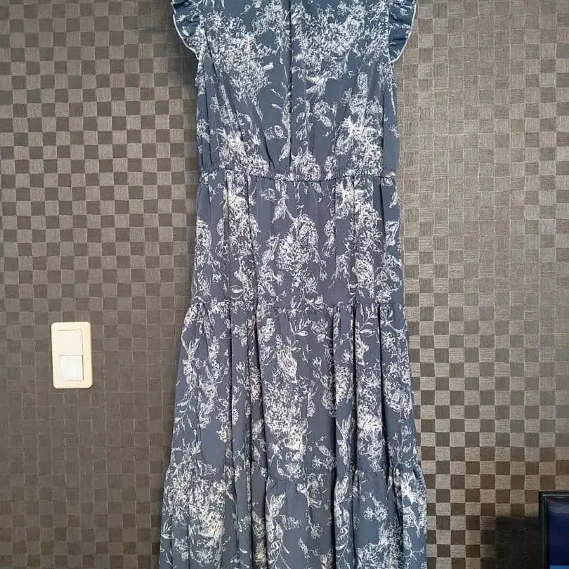 [미사용] 올리브 데 올리브 파랑 꽃무늬 슬리브리스 롱 원피스 F