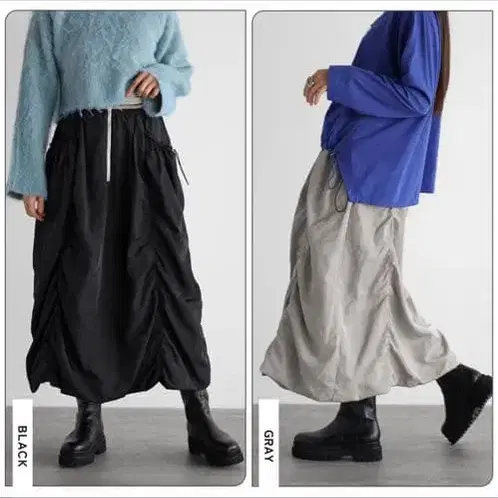 MEIMEIJ 변형 벌룬 실루엣 그레이 울 롱 스커트