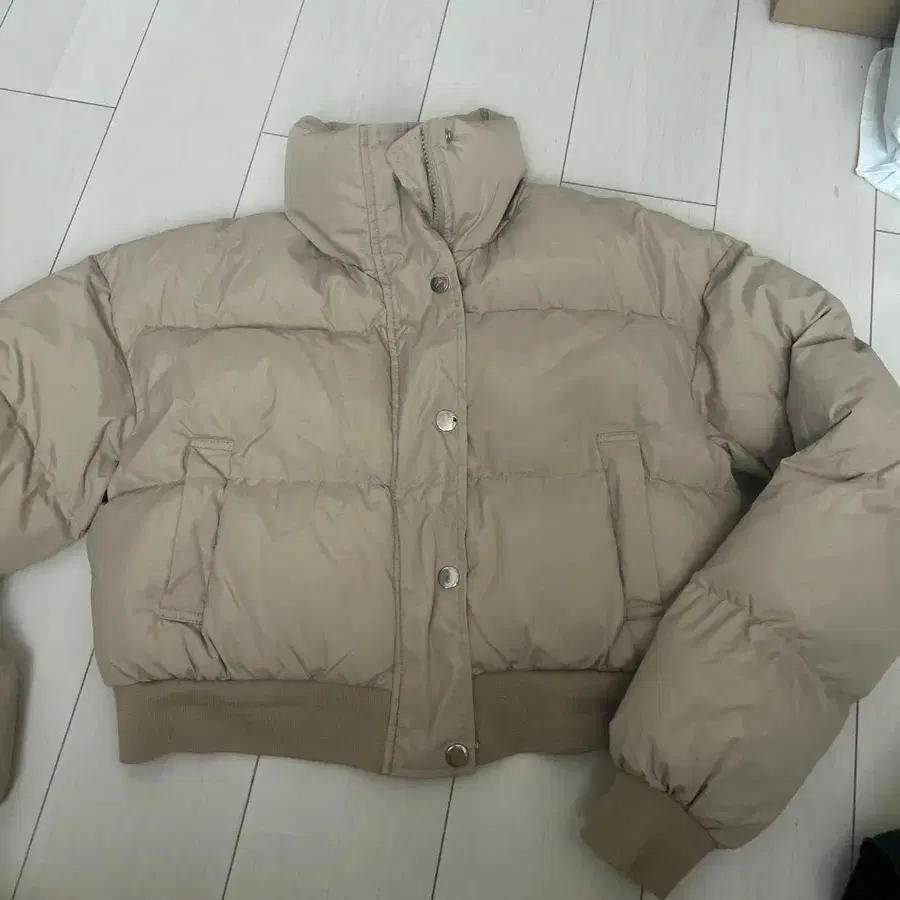 [ 새상품 미사용 ] 나일론 숏 기장 다운 페더 자켓 베이지