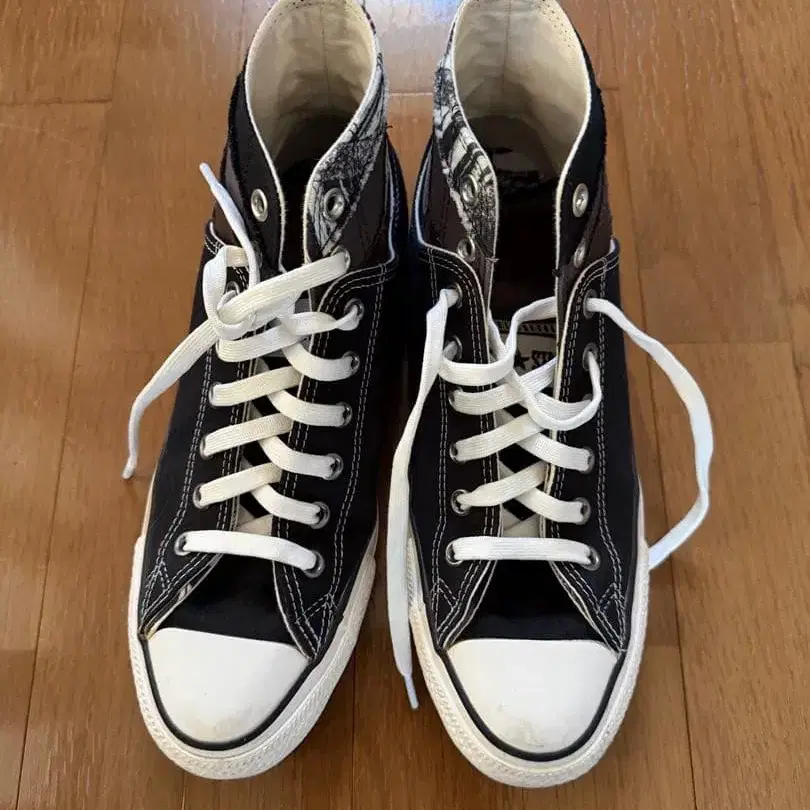 블랙 하이컷 스니커즈, 러버 솔. - 브랜드: Converse - 모델: Chuck Taylor All Star - 색상: 블랙 - 디자인: 하이컷 - 밑창: 러버 솔 방문해 주셔서 감사합니다. 사이즈 - 27cm