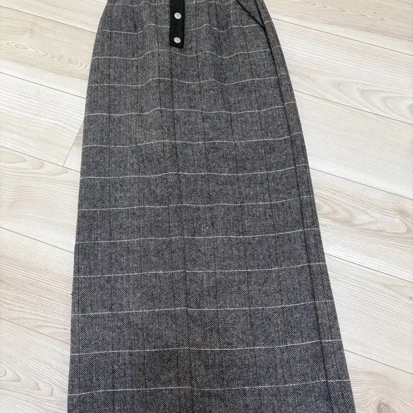 새상품급 체크 슬릿 롱 타이트 스커트 차콜 그레이