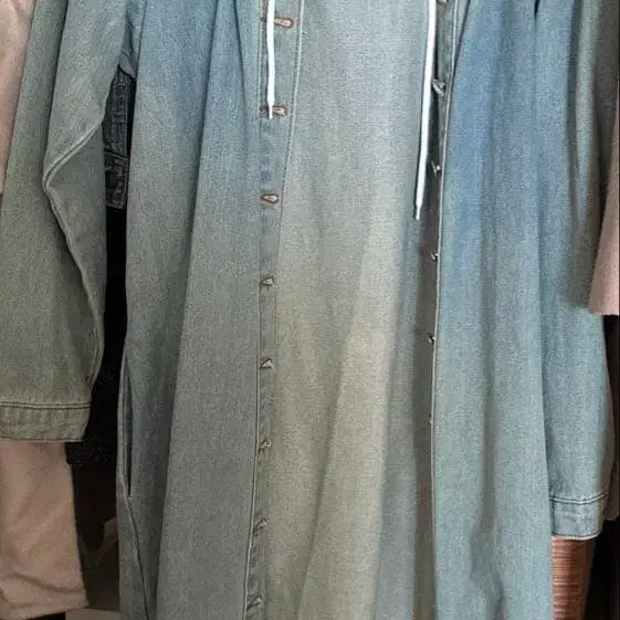 데님 아우터 롱 데님 코트 후드 부착