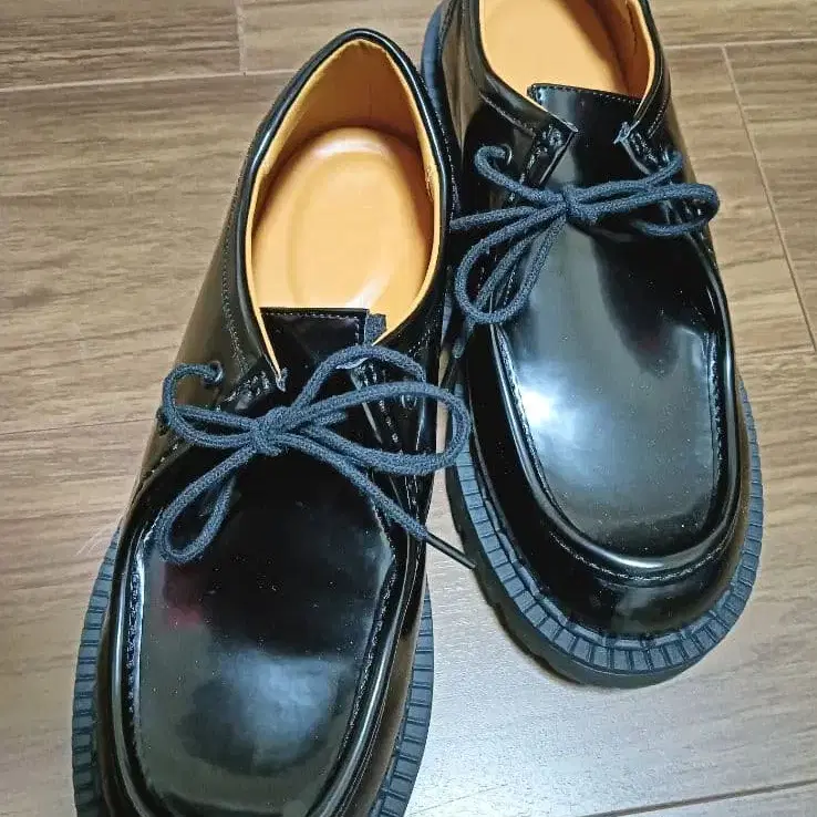 • 미사용 블랙 에나멜 x 벨벳 레이스업 슈즈 22~22.5