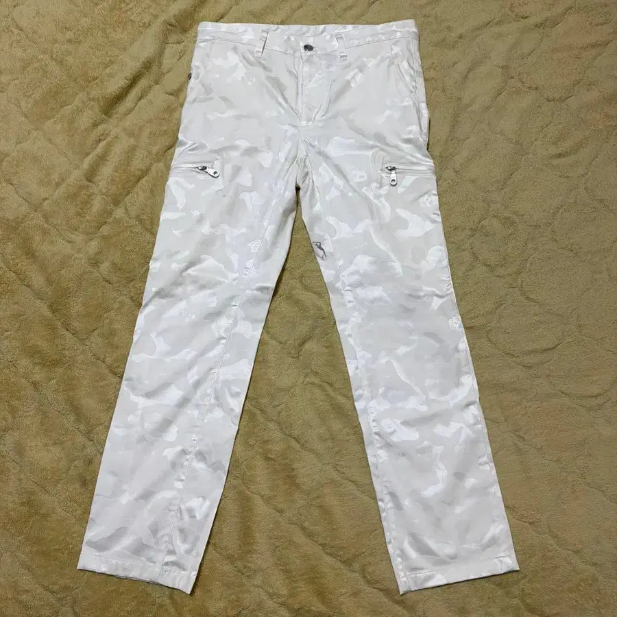 마크앤로나의 화이트 카모플라쥬 패턴 지퍼 포켓 팬츠. - 색상: 화이트 - 디자인: 카모플라쥬 패턴 허리: 평평하게 놓음 40cm 인심: 71cm 밑위: 25cm 방문해 주셔서 감사합니다. 실내에서 몇 번 착용했으며 코스 미사용으로 밑단에 마찰이나 얼룩은 없습니다. 광택, 고급스러움, 신축성 있음 ※ 반려동물 및 흡연자 없음