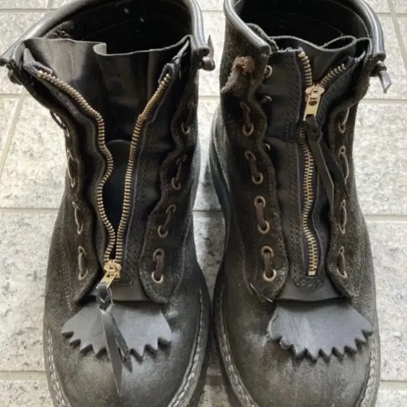 레이스업 부츠의 끈을 지퍼식으로 변경할 수 있습니다. 지퍼는 유니버셜제입니다. 업무용 미싱으로 만들었습니다. 아마추어 제작품이므로 이해해 주시는 분께 잘 부탁드립니다. 이미지 1에서 장착 이미지를 확인해 주세요.