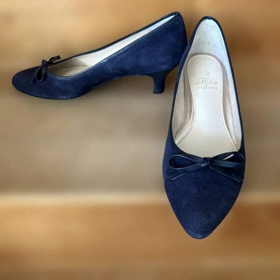 Riz Raffinee 리본 포함 네이비 스웨이드 펌프스