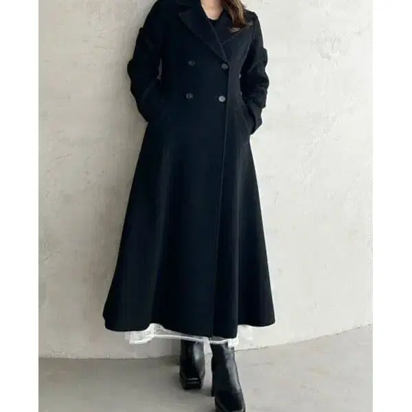 울 혼방 모사 소재를 사용한 롱 코트입니다.
