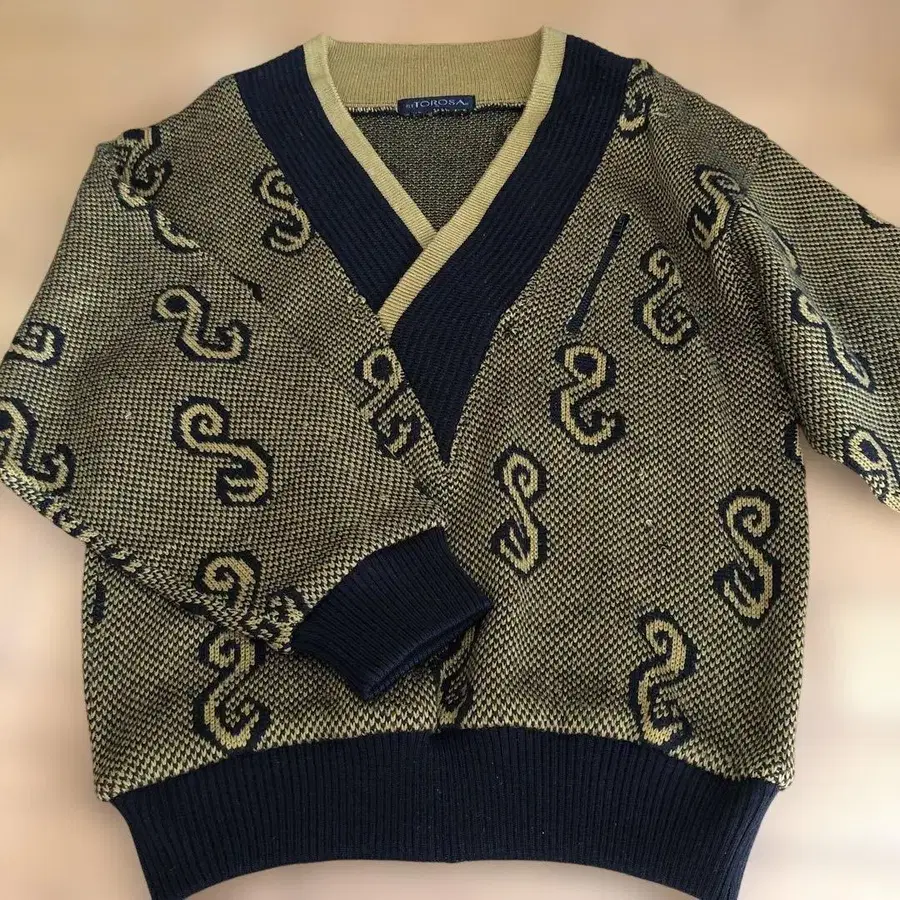 V넥 디자인의 니트 스웨터, 지퍼 포켓이 있어 실용적입니다. - 브랜드: ST. TOROSA - 사이즈: M - 디자인: V넥, 지퍼 포켓 부착 - 색상: 네이비와 베이지 조합 - 소재: 니트 방문해 주셔서 감사합니다. 사이즈 - M