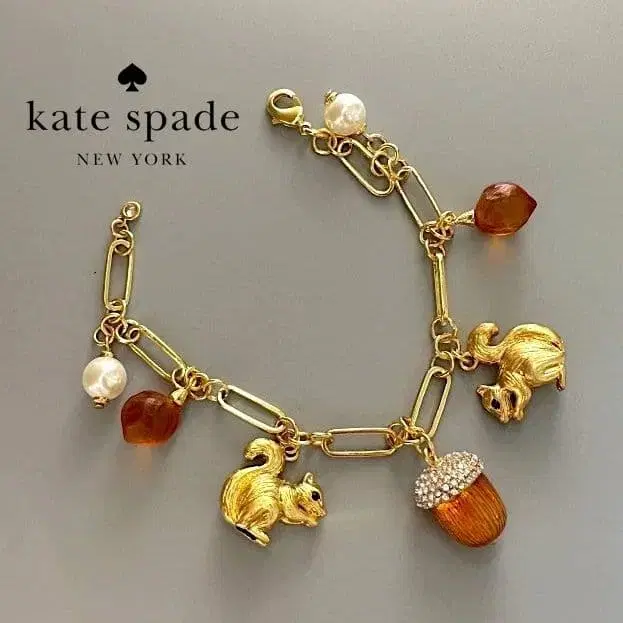 반짝이는 우산 도토리와 골드 다람쥐를 귀걸이로 만든, 유머가 넘치는 귀여운 팔찌.