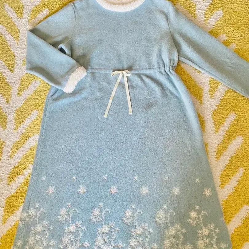 키드 블루 스카이블루 플리스 룸웨어 꽃무늬 자수 원피스 퍼