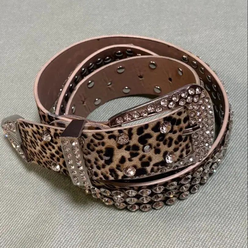 레오파드 무늬 스톤 벨트