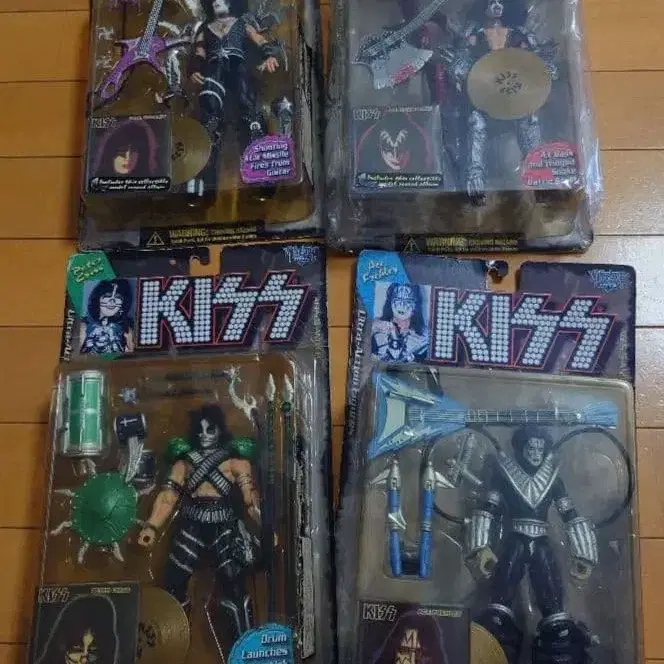 KISS 액션 피규어 4개 세트 - 브랜드: KISS - 피규어 종류: 액션 피규어 - 캐릭터: 진 시몬스 - 캐릭터: 폴 스탠리 - 부속품: 기타, 심벌즈 - 상태: 미개봉 - 시리즈: KISS 컬렉션 - 수량: 4개 세트 오래된 물건이므로 NCNR 부탁드립니다.