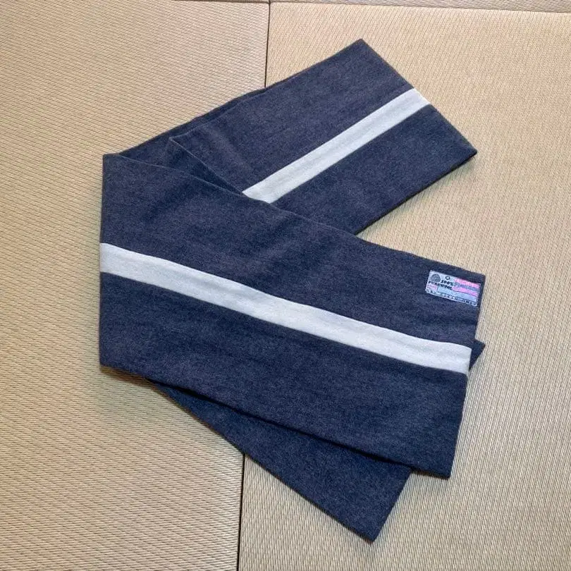 FINESSE 피네스의 100% 퓨어 울 소재 그레이와 화이트 스트라이프 디자인 머플러입니다.