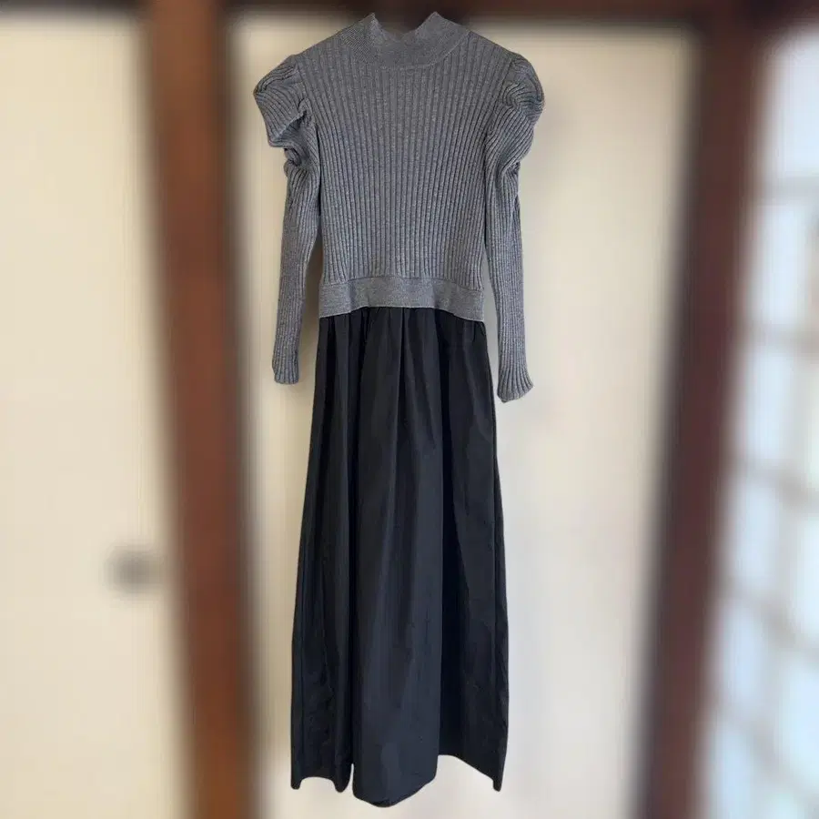 리브 편직 퍼프 슬리브가 특징인 그레이 롱 니트 원피스. - 색상: 그레이 - 디자인: 리브 편직, 퍼프 슬리브 - 소재: 니트 (스커트 부분 소재는 불명) - 스타일: 롱 원피스 - 소매 길이: 긴팔 M~L 사이즈입니다. 방문해 주셔서 감사합니다.