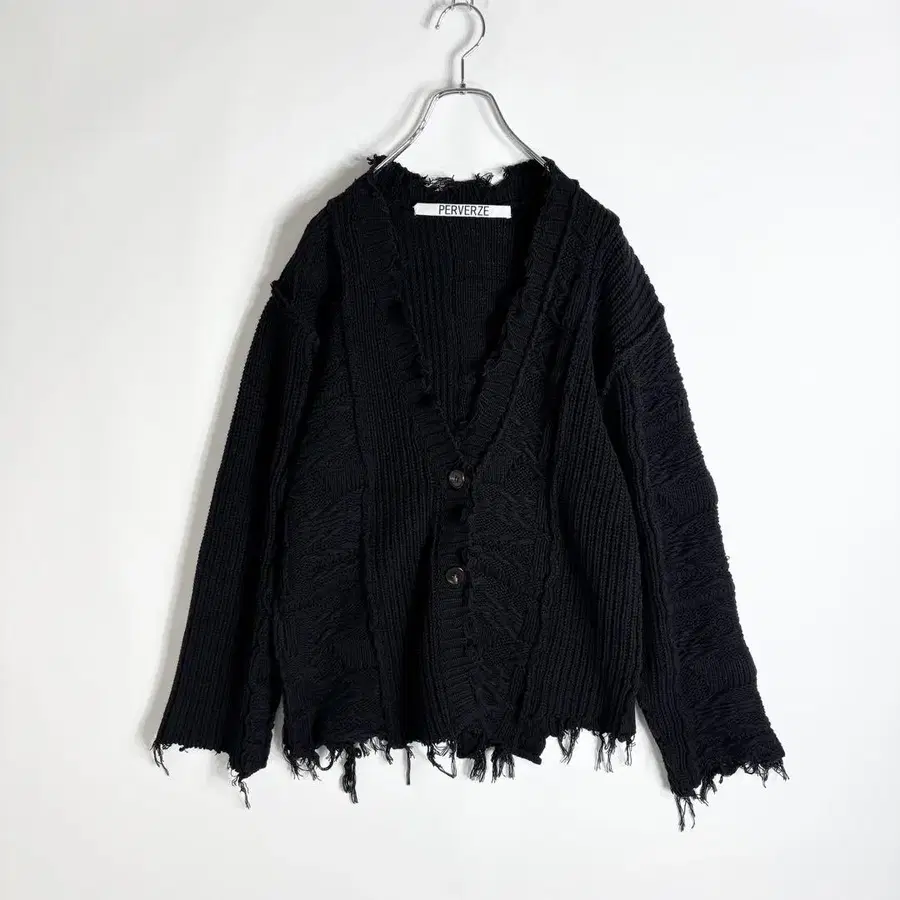 PERVERZE Wave Stripe Crash Knit 퍼버즈 데미지 가공 니트 가디건 넉넉한 블랙 size FREE