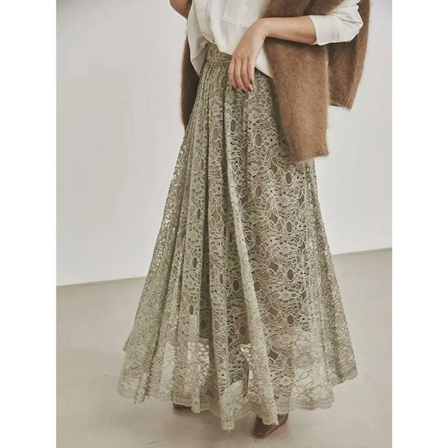 올리브색 레이스 소재의 플레어 롱 스커트 정가 25,300 사이즈가 맞지 않아 판매합니다! 부드러운 질감과 고급스러운 광택감이 특징인 레이스 스커트입니다. 앤티크풍 꽃무늬로, 차분한 컬러 전개. 심플한 상의를 매치하는 것만으로도 화려한 스타일링을 완성하는 아이템입니다. [ M 사이즈 ] 기장 92cm 허리 68cm 사이즈 - M
