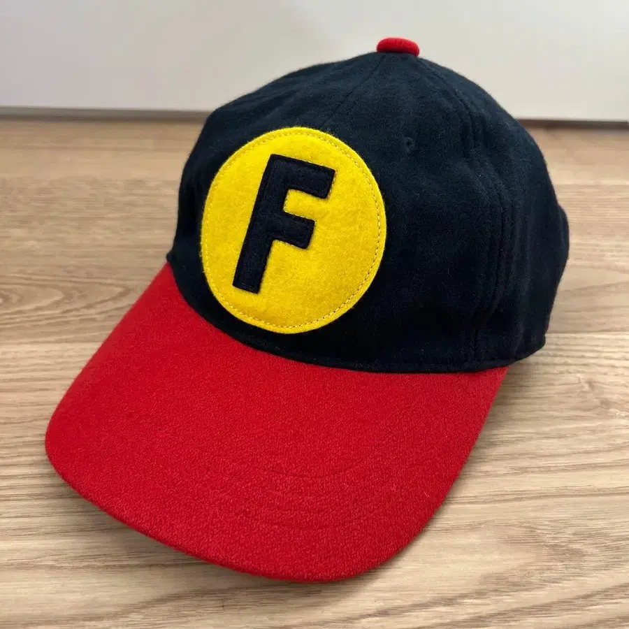 F 로고가 특징적인 블랙과 빨간색 야구 모자.